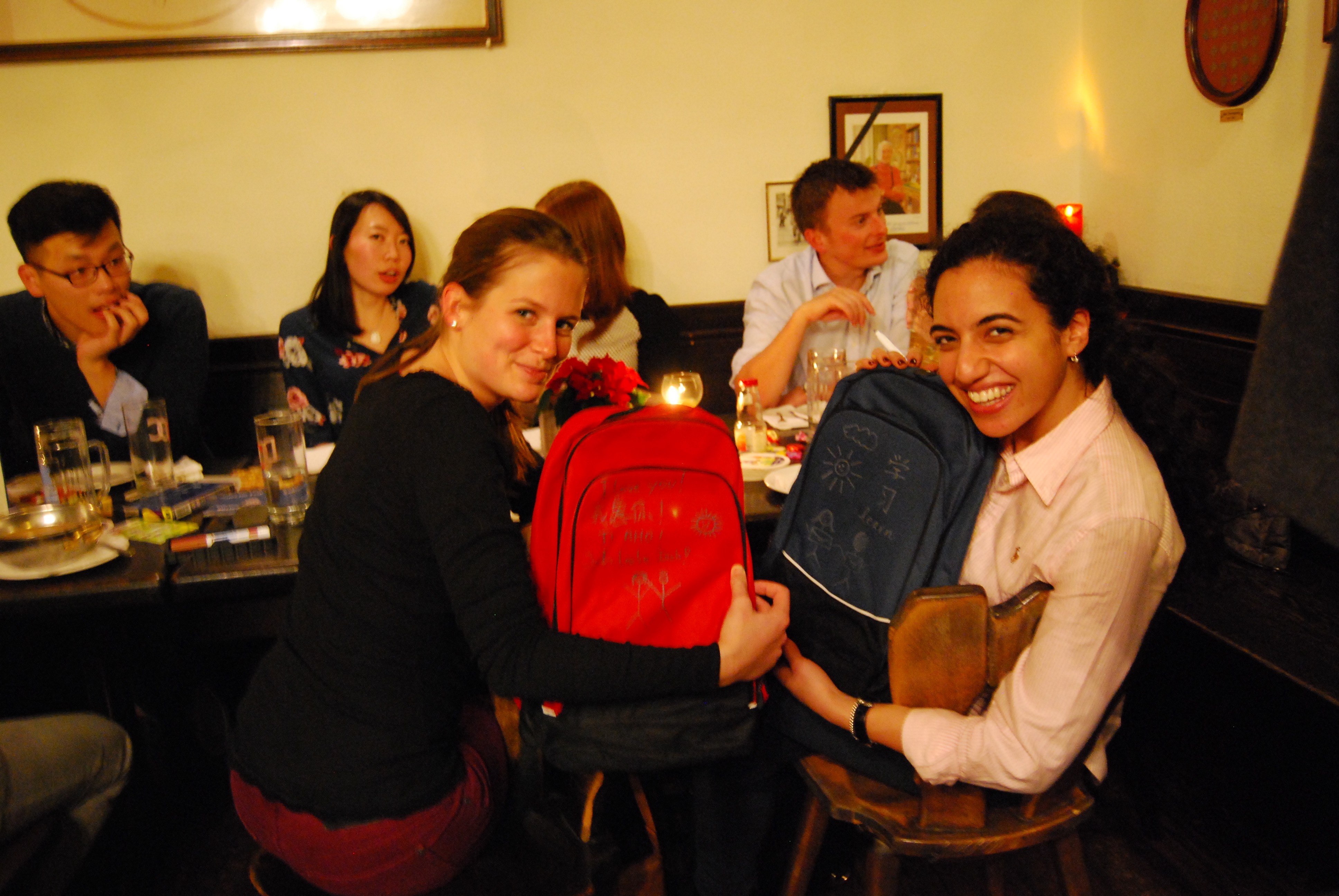 What an amazing Pre-Christmas Party! Thank you to everyone who contributed to this evening with delightful and cozy atmosphere at the Weisses Bräuhaus. We hope you had great fun (also by decorating the Rucksacks!!!) and we hope you enjoyed it as much as we did!